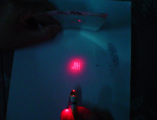 Hidden text or image just can be seen with sepecial laser pointer (or called laser reader).